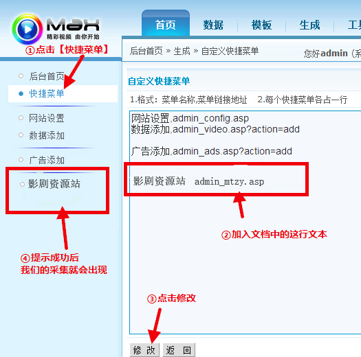 然后依次输入来源名称:mtm3u8  后缀:mtm3u8